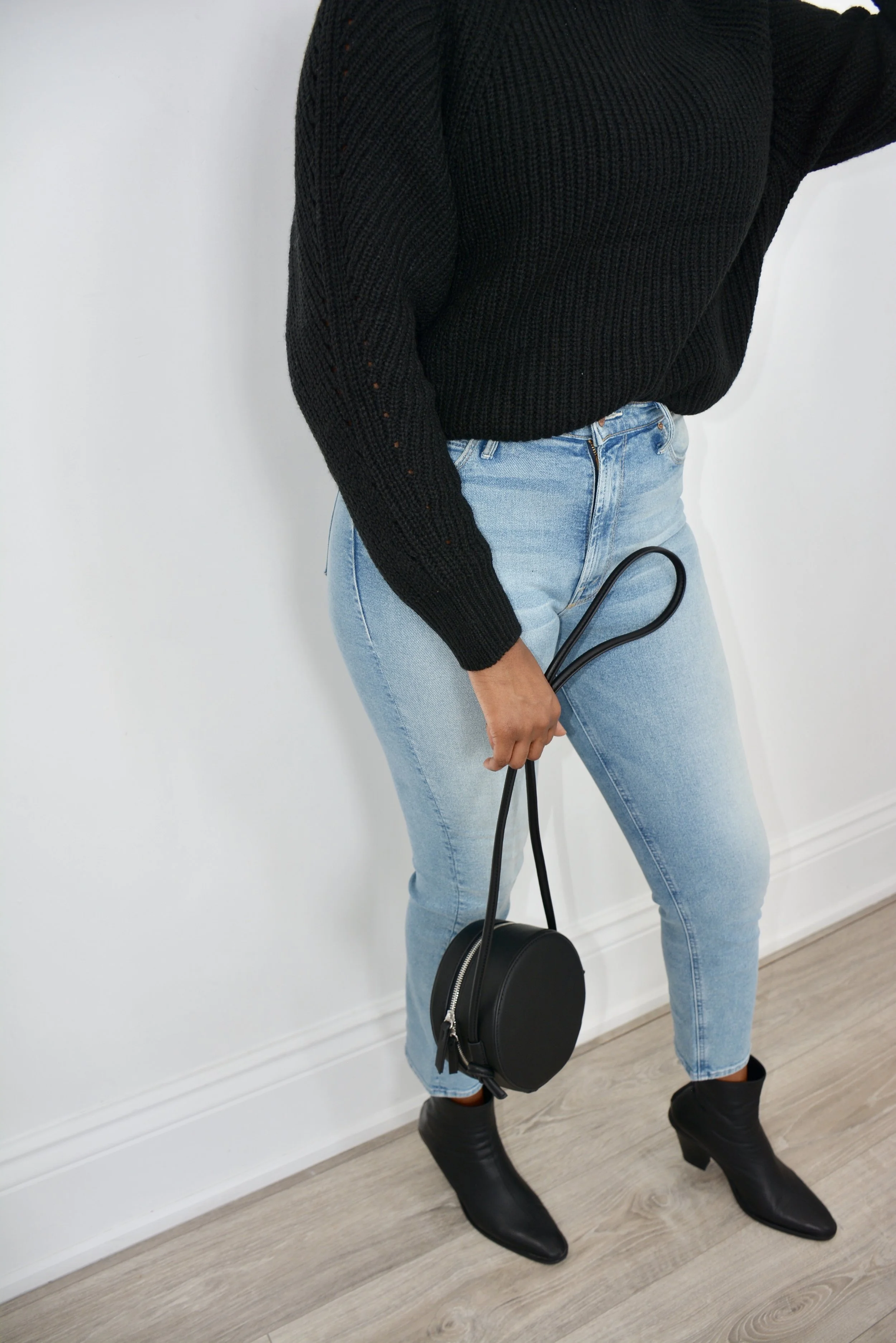 I’ve found that the easiest way to elevate a basic outfit are heels and a statement bag.