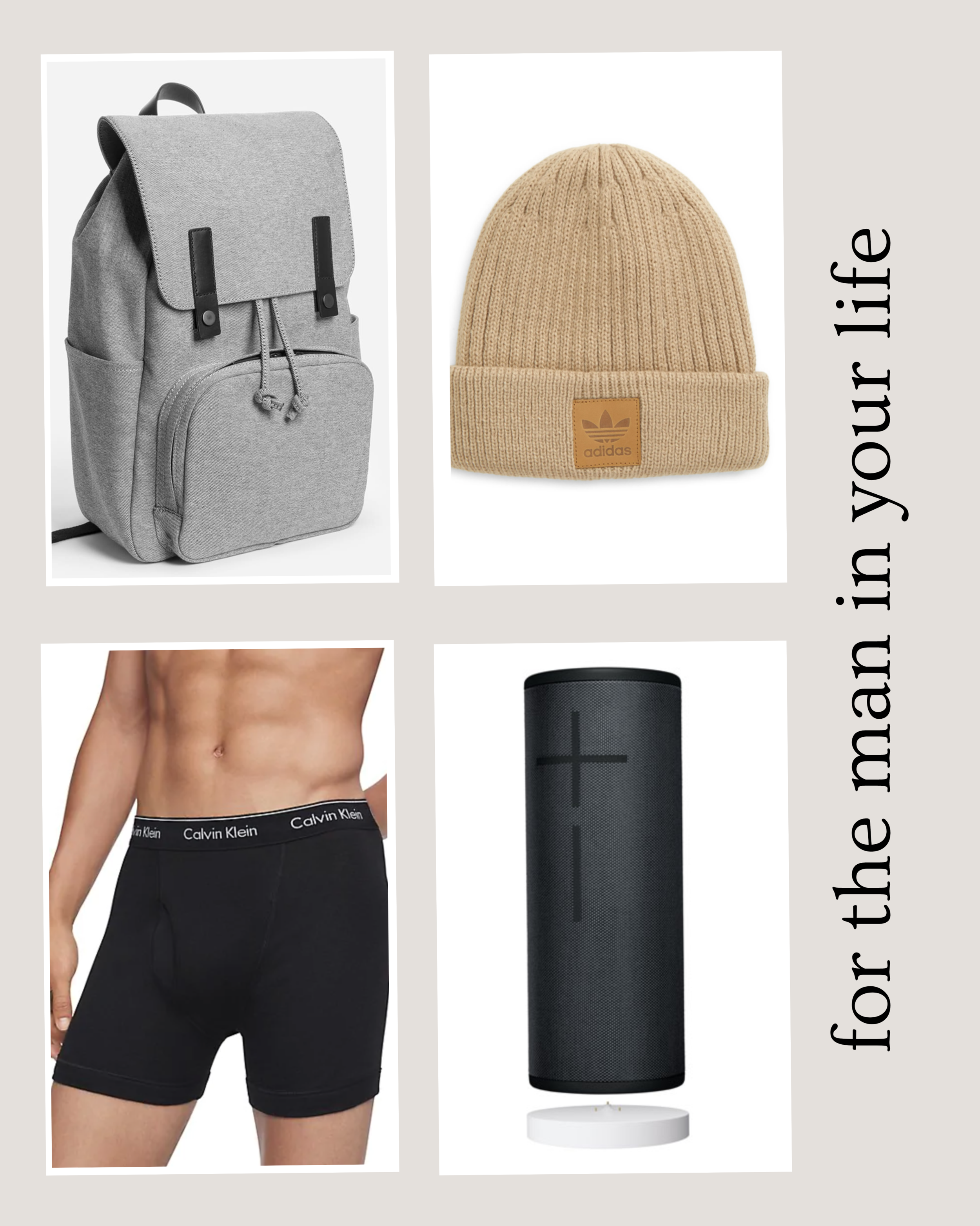 one: timeless backpack / two: cute toque for everyday wear/ three: this gift is for you and him / four: a portable speaker is a must
