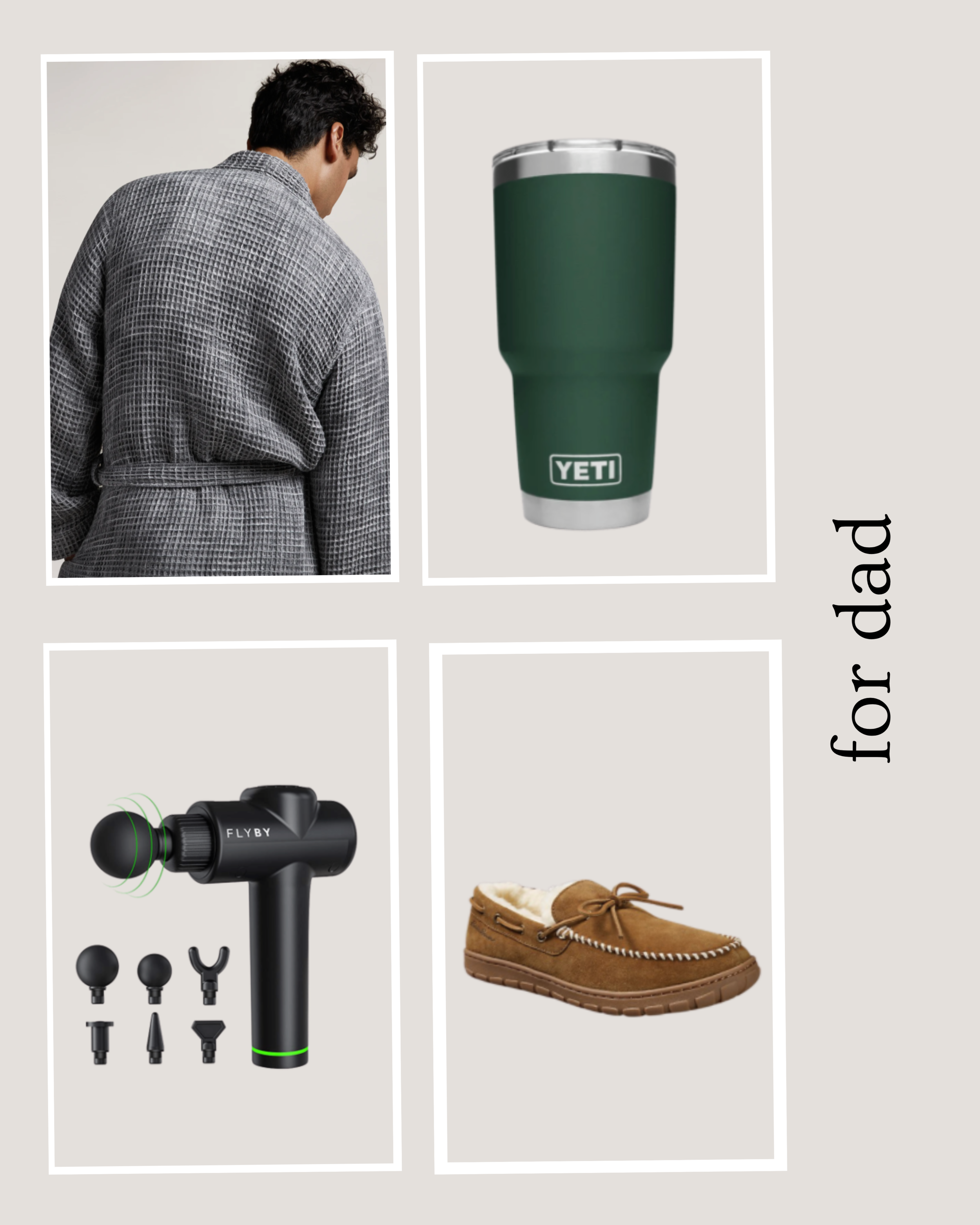 one: something he can lounge in / two: something practical / three: something to help him relax / four: something to keep him cozy