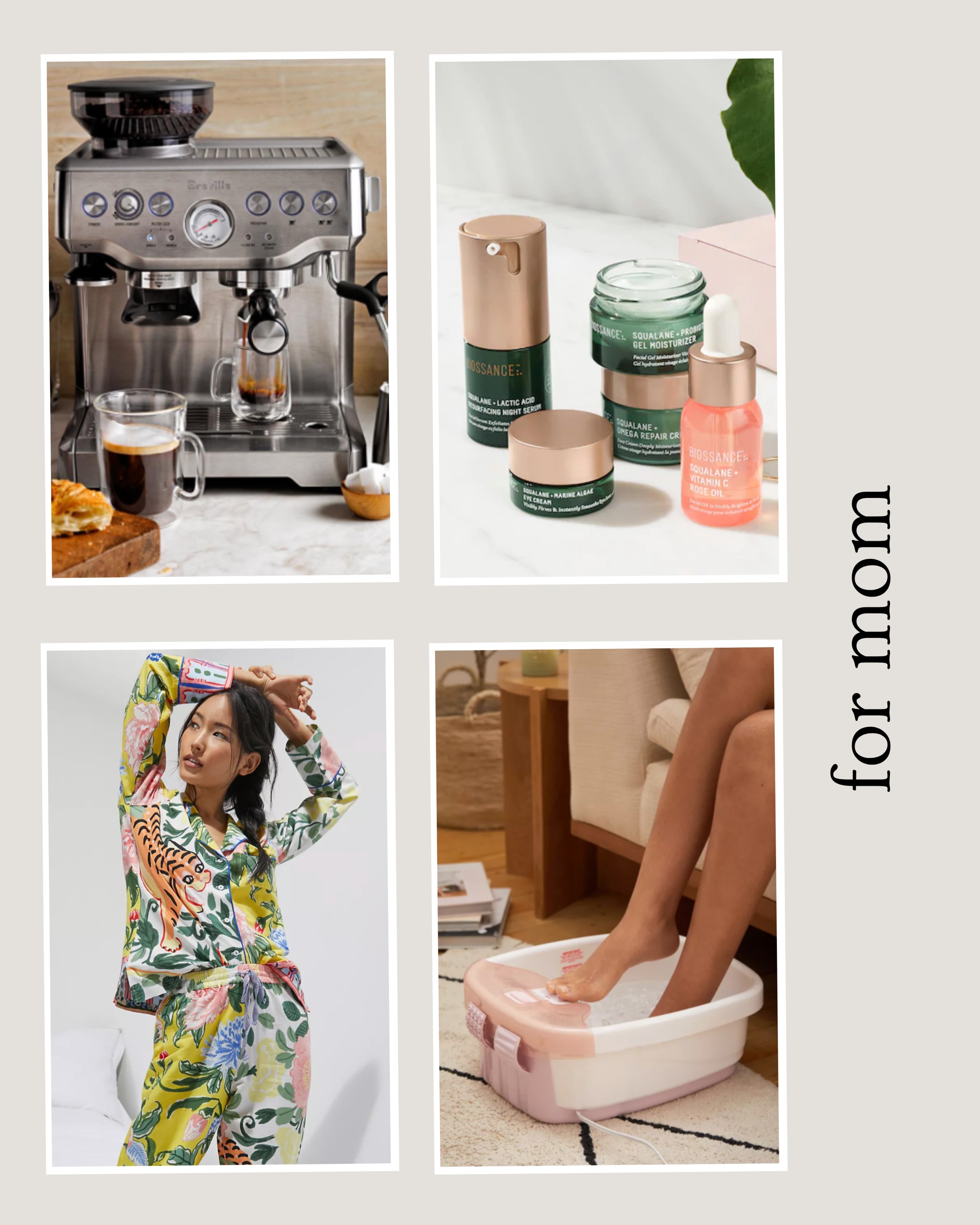 one: quality coffee at her fingertips / two: skincare that focuses on hydration.. the winter months are harsh! / three: printed pyjamas to make her feel fancy / four: now she can be pampered from the couch